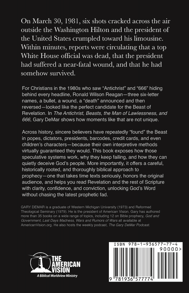 For Christians in the 1980s who saw "Antichrist" and "666" hiding behind every headline, Ronald Wilson Reagan-three six-letter names, a bullet, a wound, a "death" announced and then reversed —looked like the perfect candidate for the Beast of Revelation. In The Antichrist, Beasts, the Man of Lawlessness, and 666, Gary DeMar shows how moments like that are far from unique.